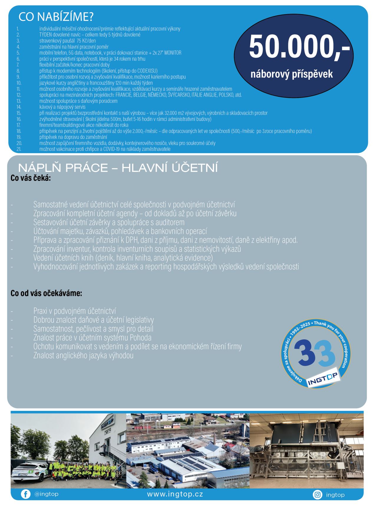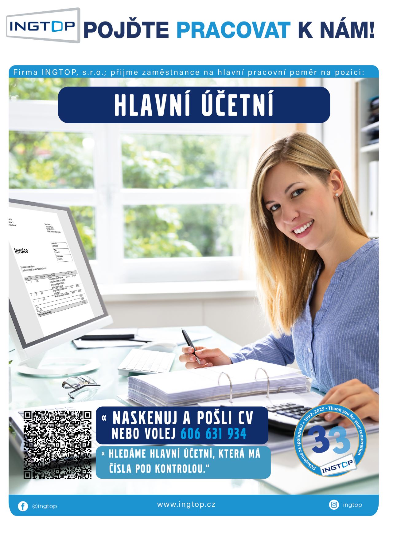 Do týmu INGTOP s.r.o. hledáme zkušenou hlavní účetní, která zvládne kompletní v